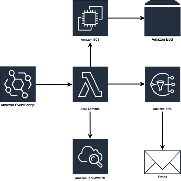 - AWS Lambda: This was used to create and execute the core logic for identifying instances, creating/deleting snapshots, and tagging them.